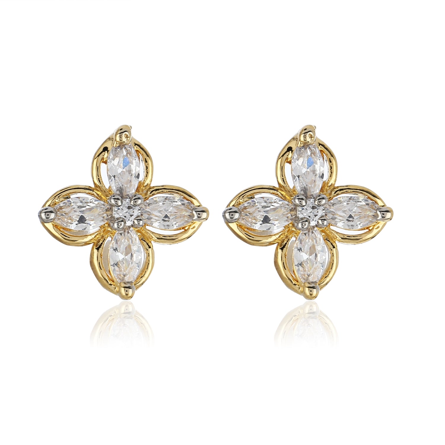 Estele Gold Plated American Diamond flower Stud Earrings for women