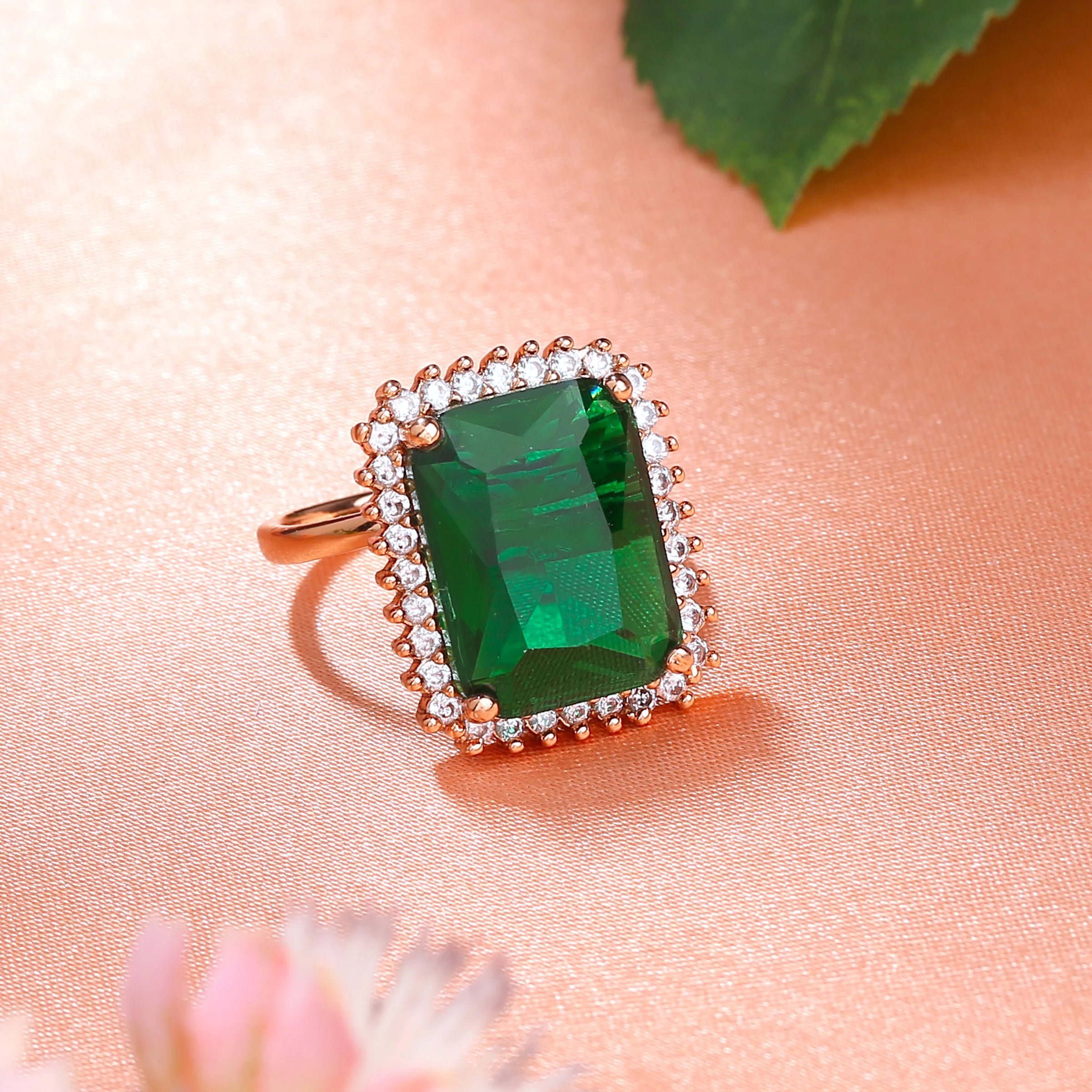 Estele Rg Plated CZ Sparkling Green Ring
