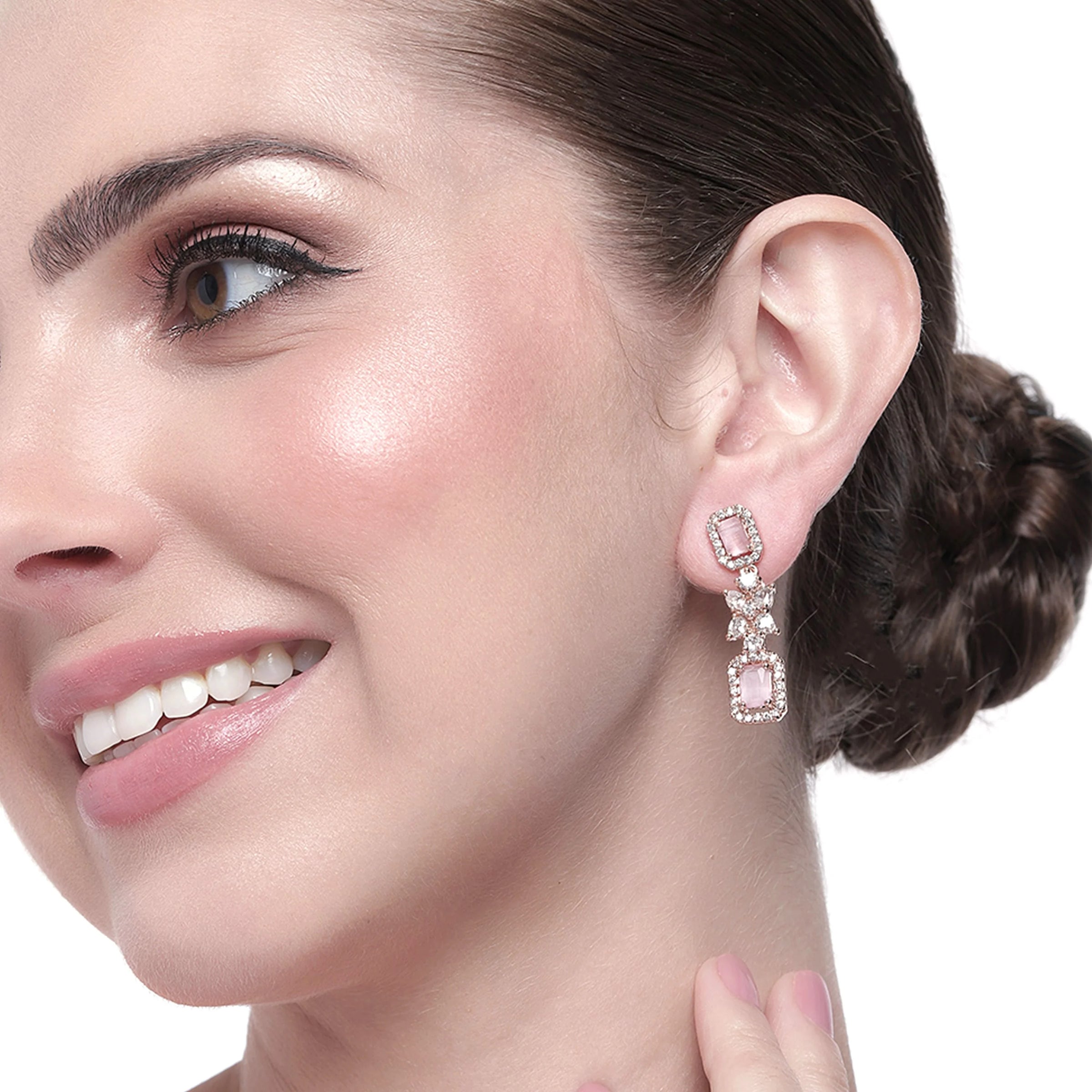 Estele Rg Plated CZ Sparkling Mint Pink Stone Earring