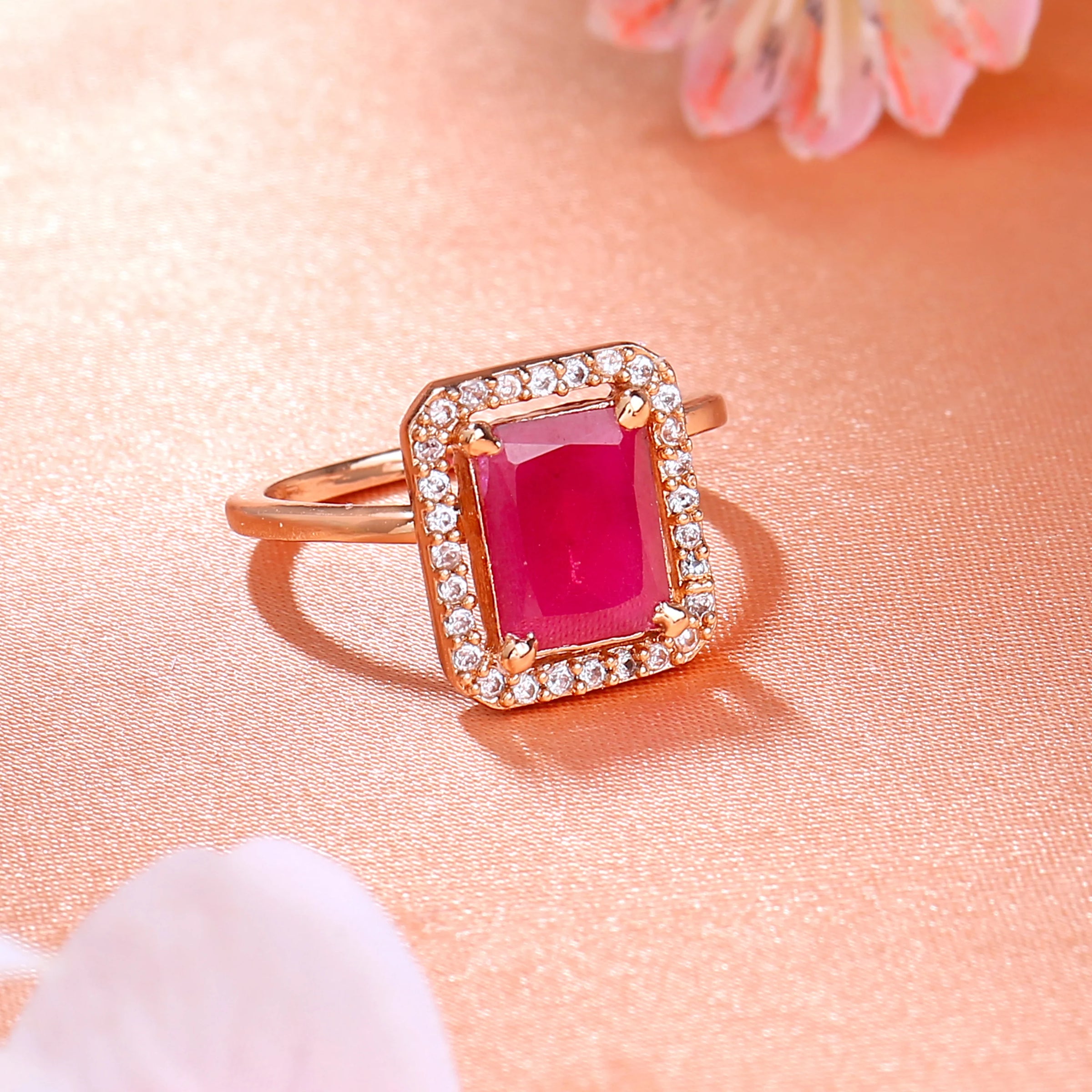 Estele Rg Plated CZ Sparkling Ruby Ring