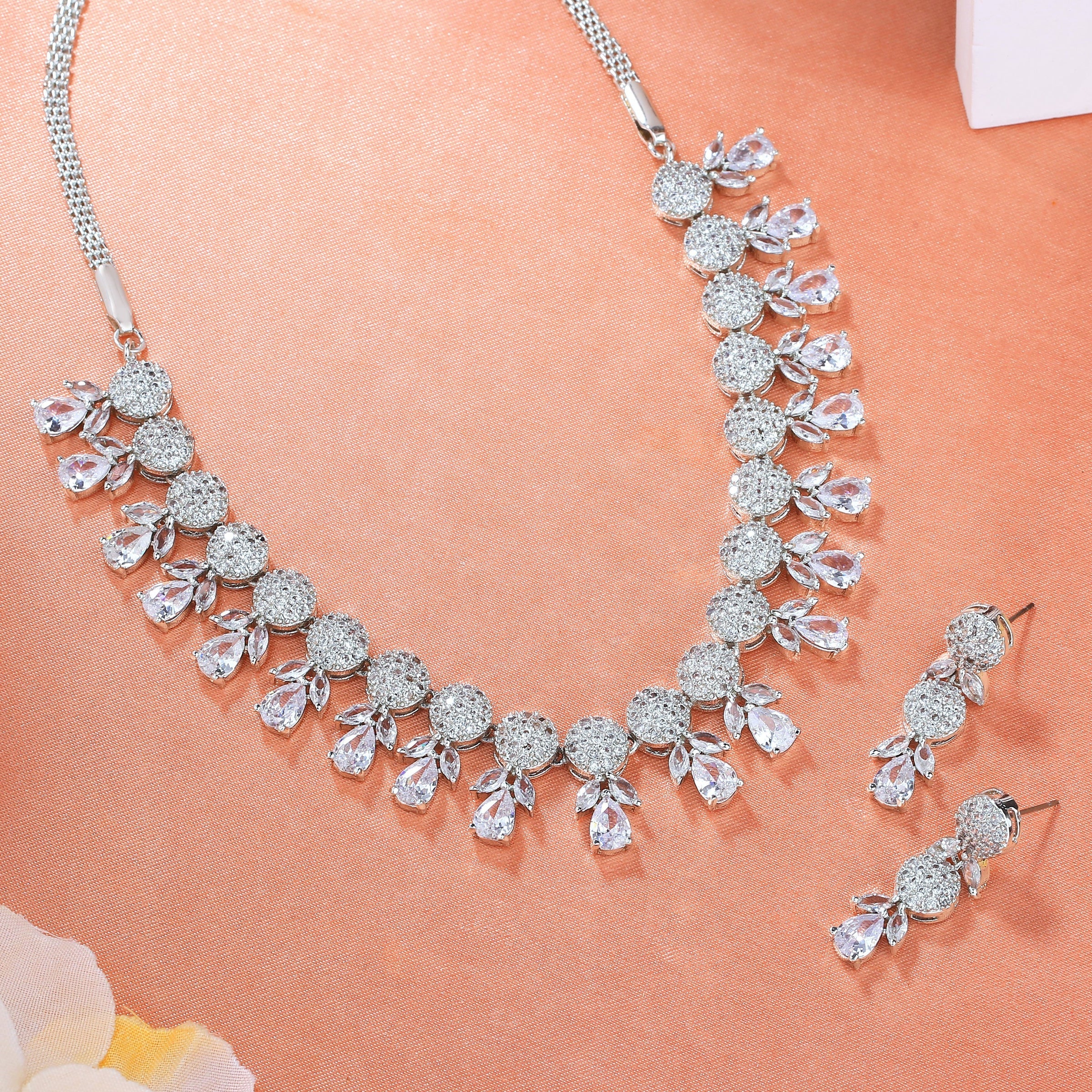 Estele Rhodium Plated CZ Beautiful Necklace Set