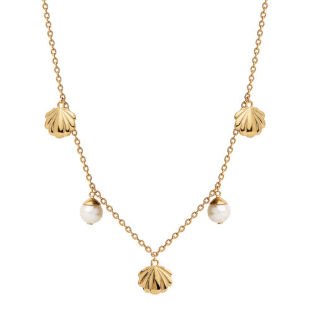 Najo Stg Golden Maldives Clam Shell Charms Pearl Drops Necklace