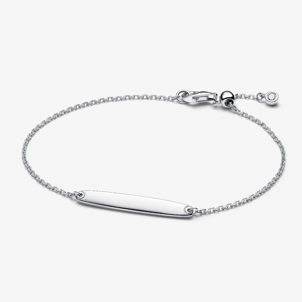 Engravable sterling silver bar bracelet with clear
