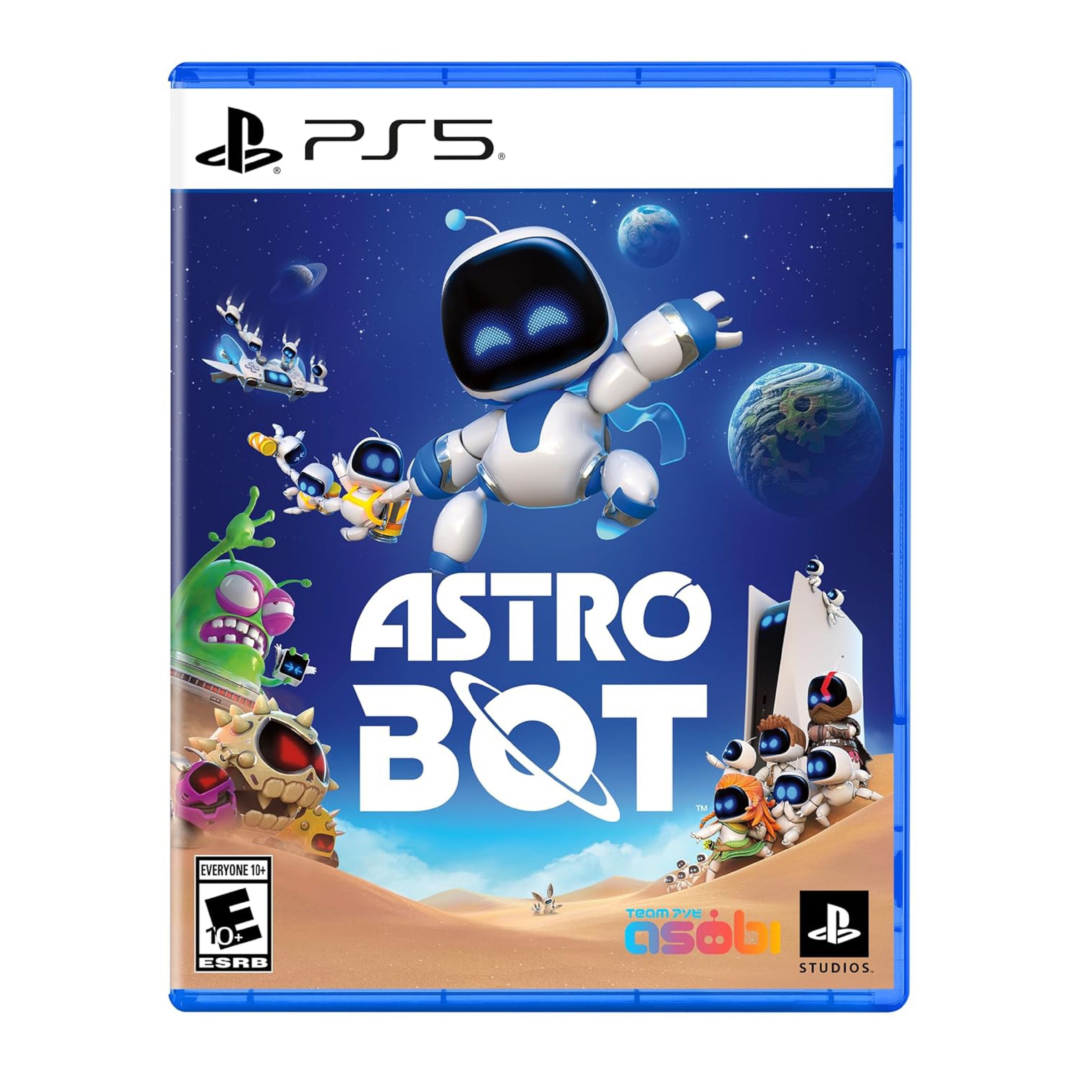 Sony Astrobot PS5- 3D platformer where players control Astro to rescue his scattered crew and repair the PS5 mothership after a galactic nemesis attacks. The game features over 50 diverse planets, introduces new power-ups for Astro .Platforming adventure: The game is a vibrant and imaginative platformer with a variety of moves, including jumping, hovering, punching, and using unique power-ups like rocket-propelled boots or extendable boxing glovesÂ