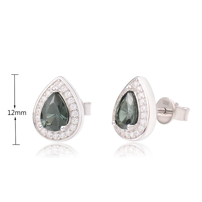 J&T STG Pearl 6*8mm Green CZ White CZ Earring