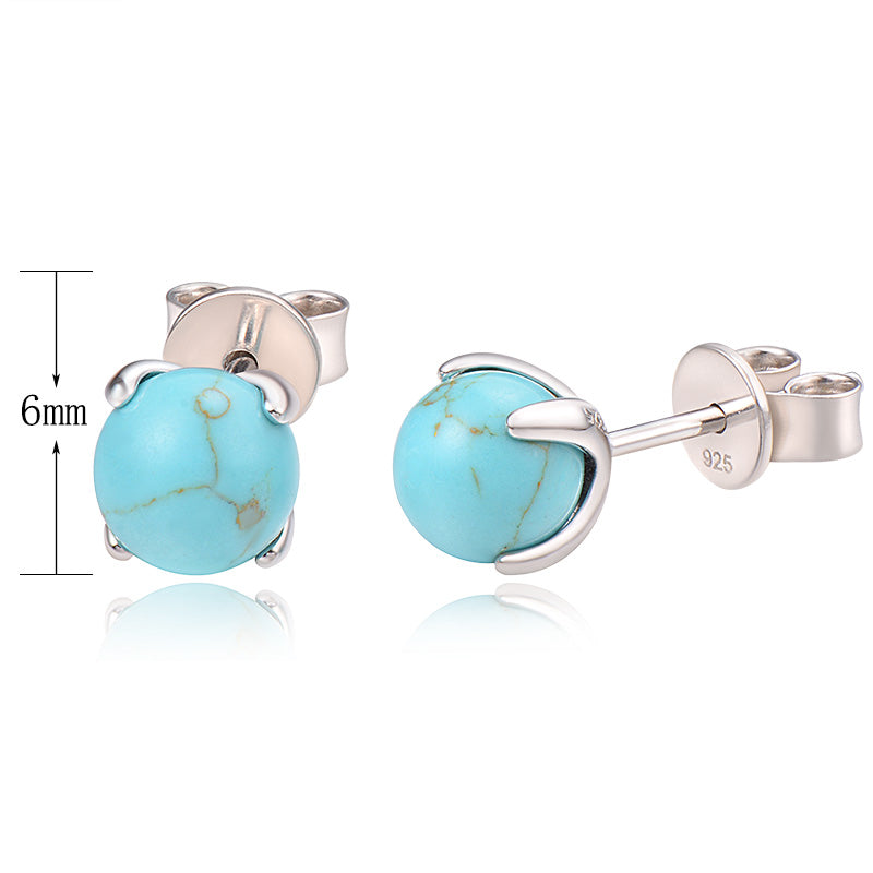 J&T STG Turquoise 6 5mm Rhodium Plated Earring